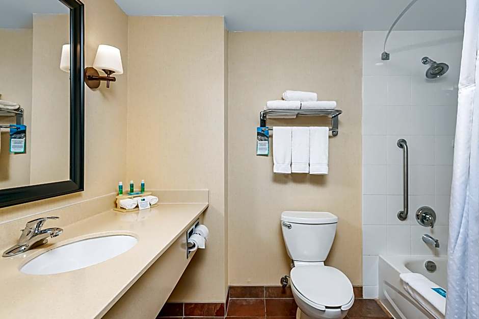This accessible room offers a 32-inch flat-screen cable TV, a microwave and fridge. A roll in shower is provided.